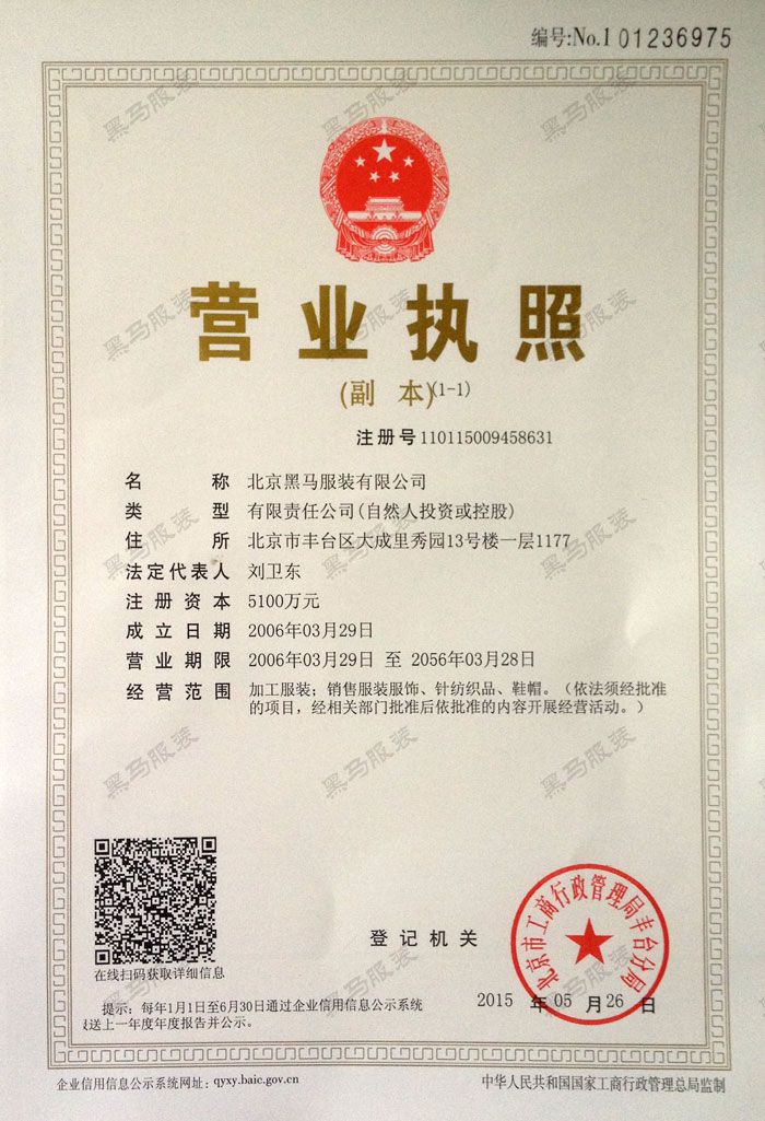 黑馬服裝企業資質