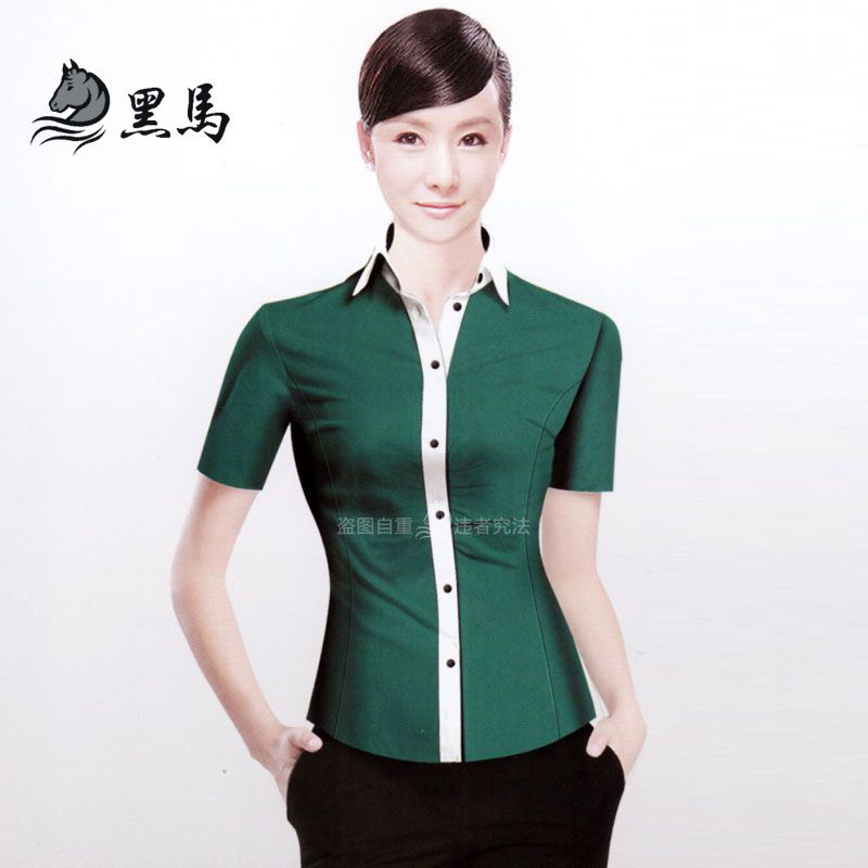 藍色標準領(lǐng)女士短袖襯衫