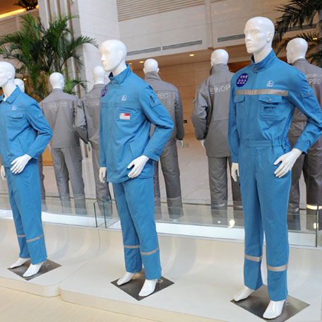 勞保服裝的主體顏色應(yīng)區(qū)別于作業(yè)場(chǎng)所背景色,不得影響各種色光信號(hào)的正確判斷。因此, 1、油田板塊有國旗紅和橘紅色兩種,其中橘紅色用于海上作業(yè)。 2、煉化板塊采用煉化藍(lán)。 3、銷售板塊有藍(lán)色和紅黑色兩種顏色,日前樣衣正在試穿,顏色待定。 4、工程建設(shè)板塊有煙灰色和湖藍(lán)色兩種,企業(yè)自行選擇其中一色。44,42,45,76,92,94,39,121,122