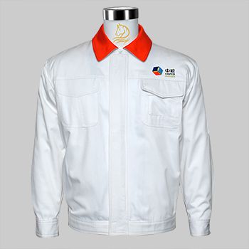 正面圖片:白色與橙色撞色搭配更具活力,大面積的白色適合從事食品行業(yè)的工作人員穿著,領(lǐng)口處的橙色部分更耐臟實(shí)用。拉鏈暗門襟設(shè)計(jì),更符合行業(yè)衛(wèi)生要求。126,130,76,64,66,119