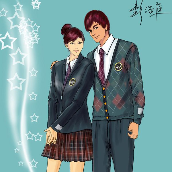 “簡便、高貴”是本套校服的詮釋,校服簡介且裁剪合身的款、獨特的含蓄氣質旨在強調“博學、雅正”的內在含義。藍色小西服寓為海洋般寬廣的心胸,卡其色毛衣與百褶裙簡介、大方。